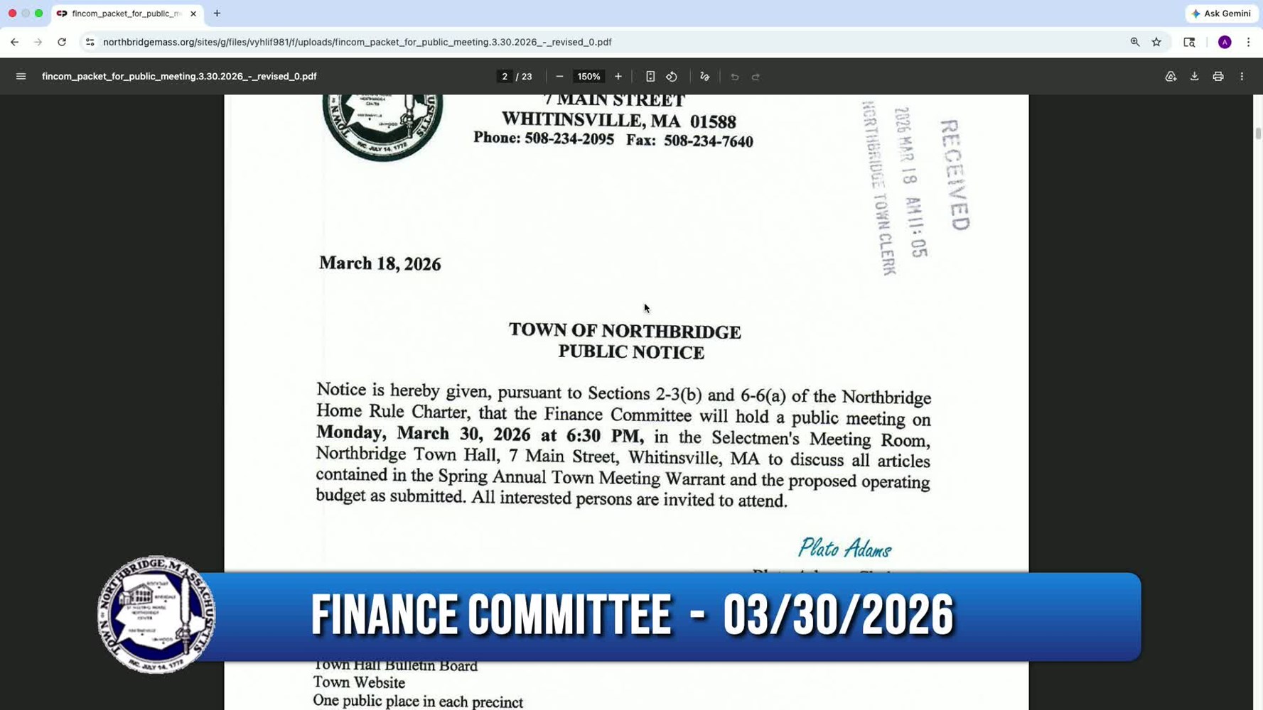 Finance Committee Meeting - 03/30/2026